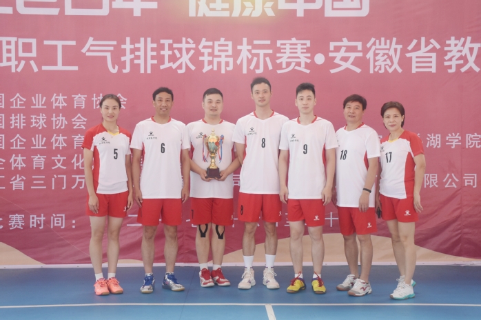 本次赛事由中国企业体育协会主办,分设青年男子、青年女子、中年男子、中年女子、青年男女混合、中年男女混合六个组别,安徽赛区共计420余名运动员参赛,我校组织代表队参加了青年混合组的比赛。本组14支代表队经过小组赛以及三轮淘汰赛决出最终名次,我校代表队充分发挥自身技术特点,坚持高快结合、多点开花,队员之间攻传配合默契、相互鼓励、顽强拼搏,展现了优秀的精神风貌与团队合作精神,最终斩获冠军、获体育道德风尚奖,并取得代表安徽省参加全国赛的资格,全国赛将于11月在福建漳州(中国女排训练基地)举行。